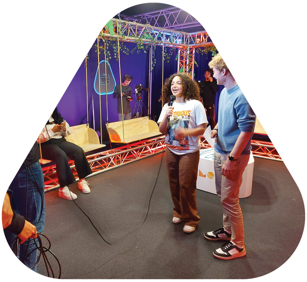 Tijdens je opleiding doe je mee aan projecten, waarbij je samenwerkt met studenten van andere opleidingen. Professionals in de mediabranche moeten namelijk niet alleen goed zijn in hun eigen vak. Ze moeten ook kunnen samenwerken met mensen met een andere specialisatie.
