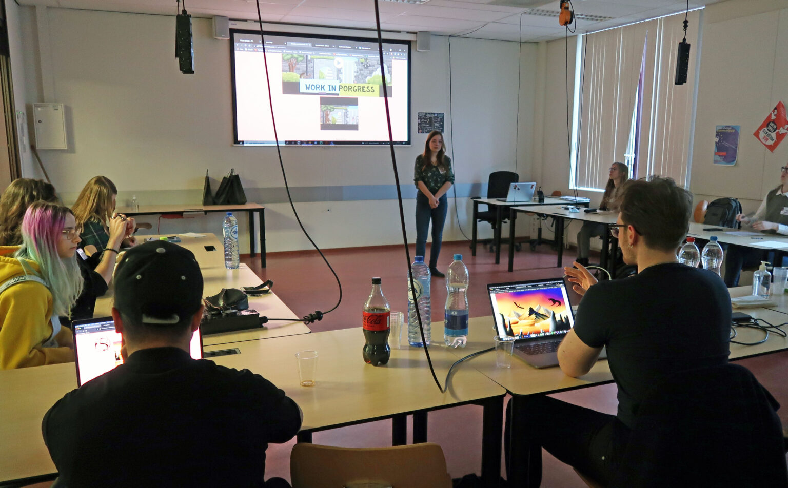 Hierbij beoordelen circa 60 mensen uit de industrie de portfolio’s van zo’n 60 derdejaars studenten Software developer en Game artist. Doel: de studenten inzicht geven in de vaardigheden die werkgevers belangrijk vinden, met het oog op de aankomende stageperiode. En daarnaast natuurlijk over en weer kennismaken en de eerste contacten leggen voor een succesvolle stage.